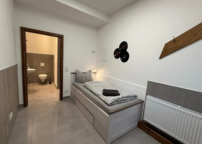 Gästerna kan nå Apoldas centrum på 5 minuters promenad och besöka Dobermann Denkmal som ligger mindre än 700 meter bort. Sevärdheterna inkluderar Museum barracks "Olle DDR" Apolda, i närheten av lägenheten. Inom 10 minuters bilresa från Ferienwohnung Funke D8 Fuer Monteure med 1 sovrum hittar du Bismarckturm.